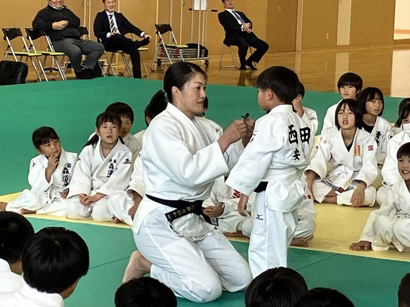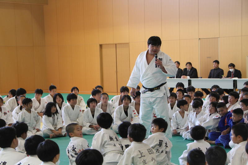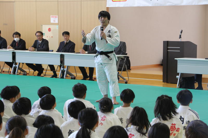 閉会行事では、受講者を代表して南大分中学校柔道部の髙野朔也さんが、講師のお二人への感謝の言葉を述べると共に「今日教わったことを活かして強くなれるよう努力します!」と頑張る宣言をしました。