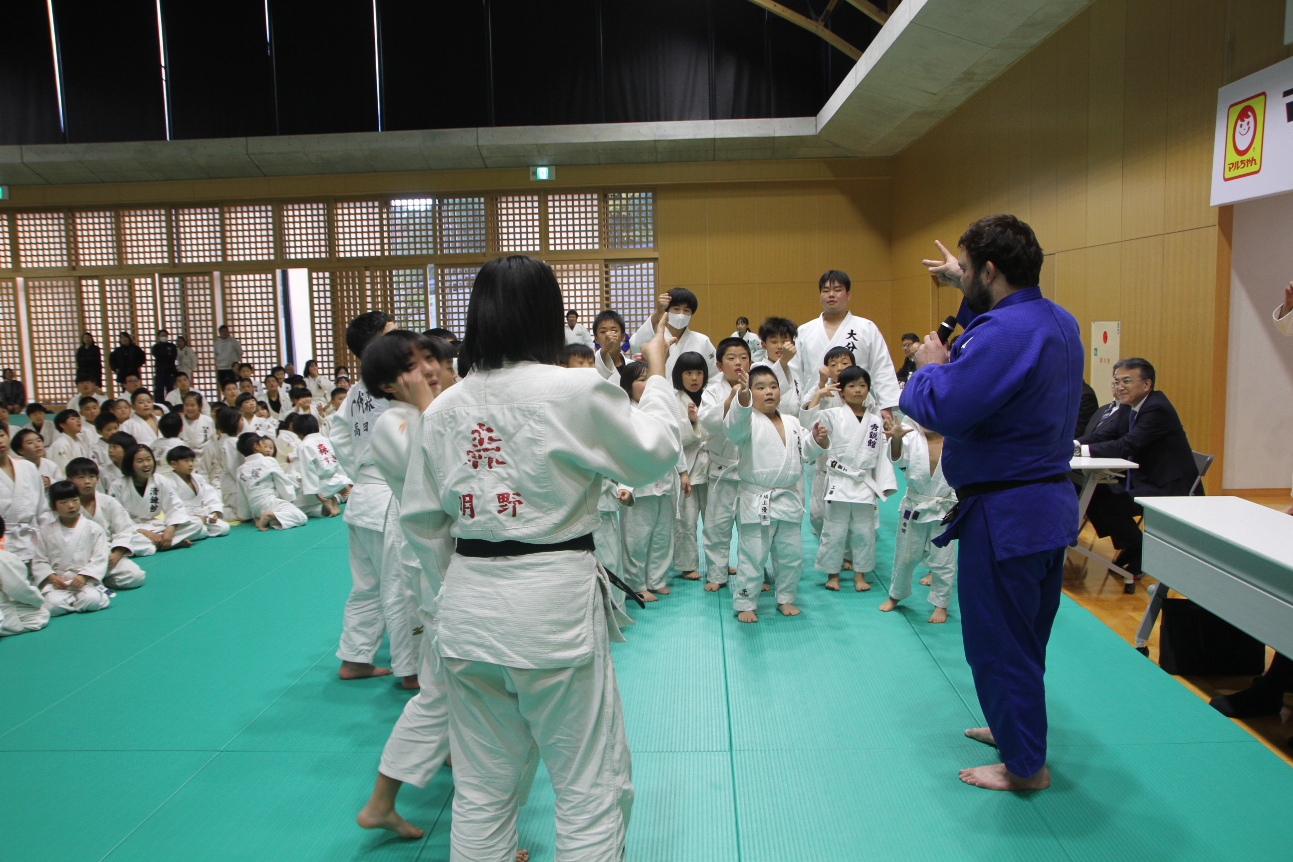 2025年12月9日 11時16分 恒例となりましたマルちゃん少年柔道教室を12月6日(土曜日)に開催しました。大分市内外の道場・クラブや中学校より合わせて約200名の小学生と中学生が参加してくれました。