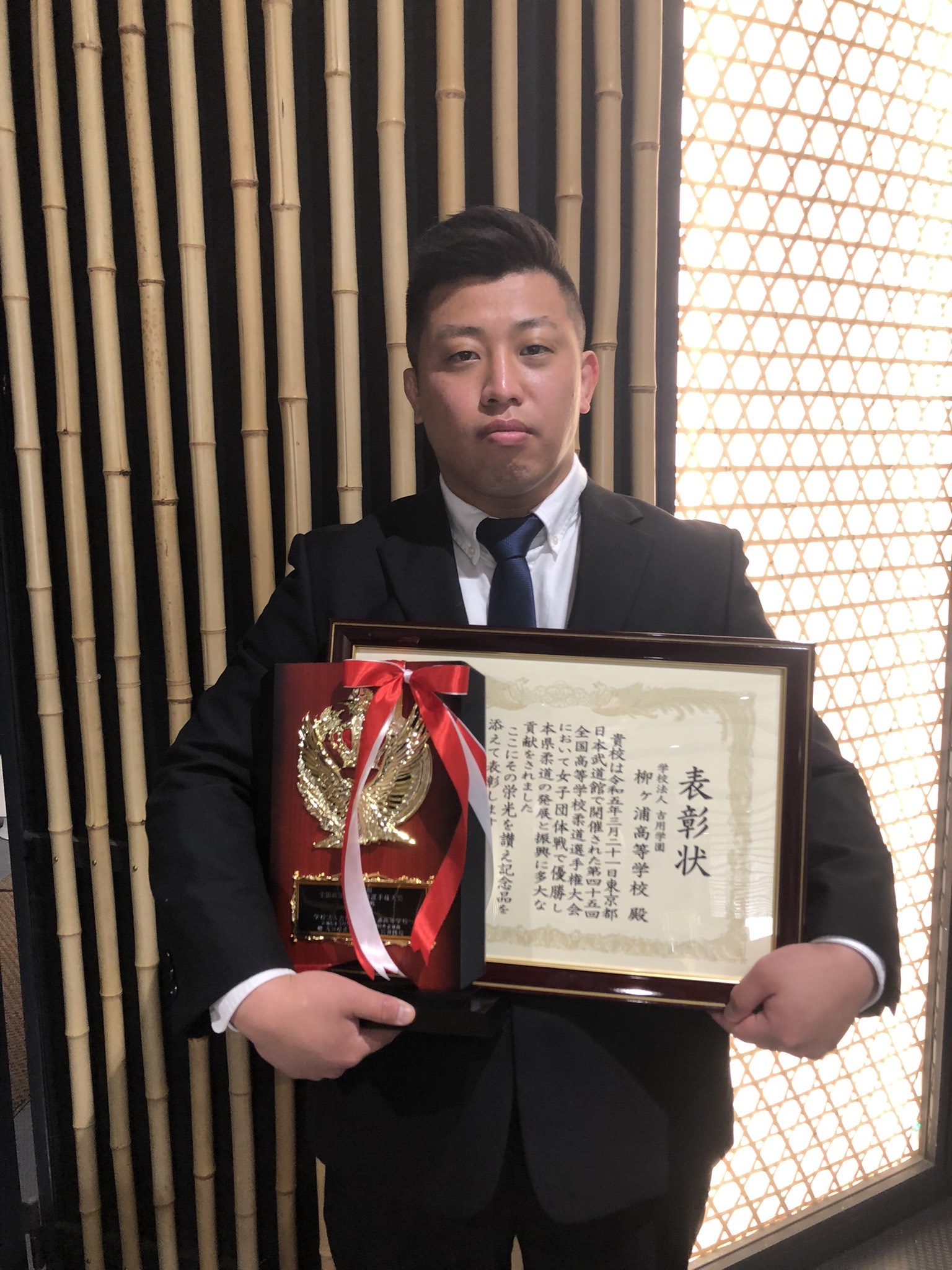 閉会行事では、受講者を代表して南大分中学校柔道部の髙野朔也さんが、講師のお二人への感謝の言葉を述べると共に「今日教わったことを活かして強くなれるよう努力します!」と頑張る宣言をしました。